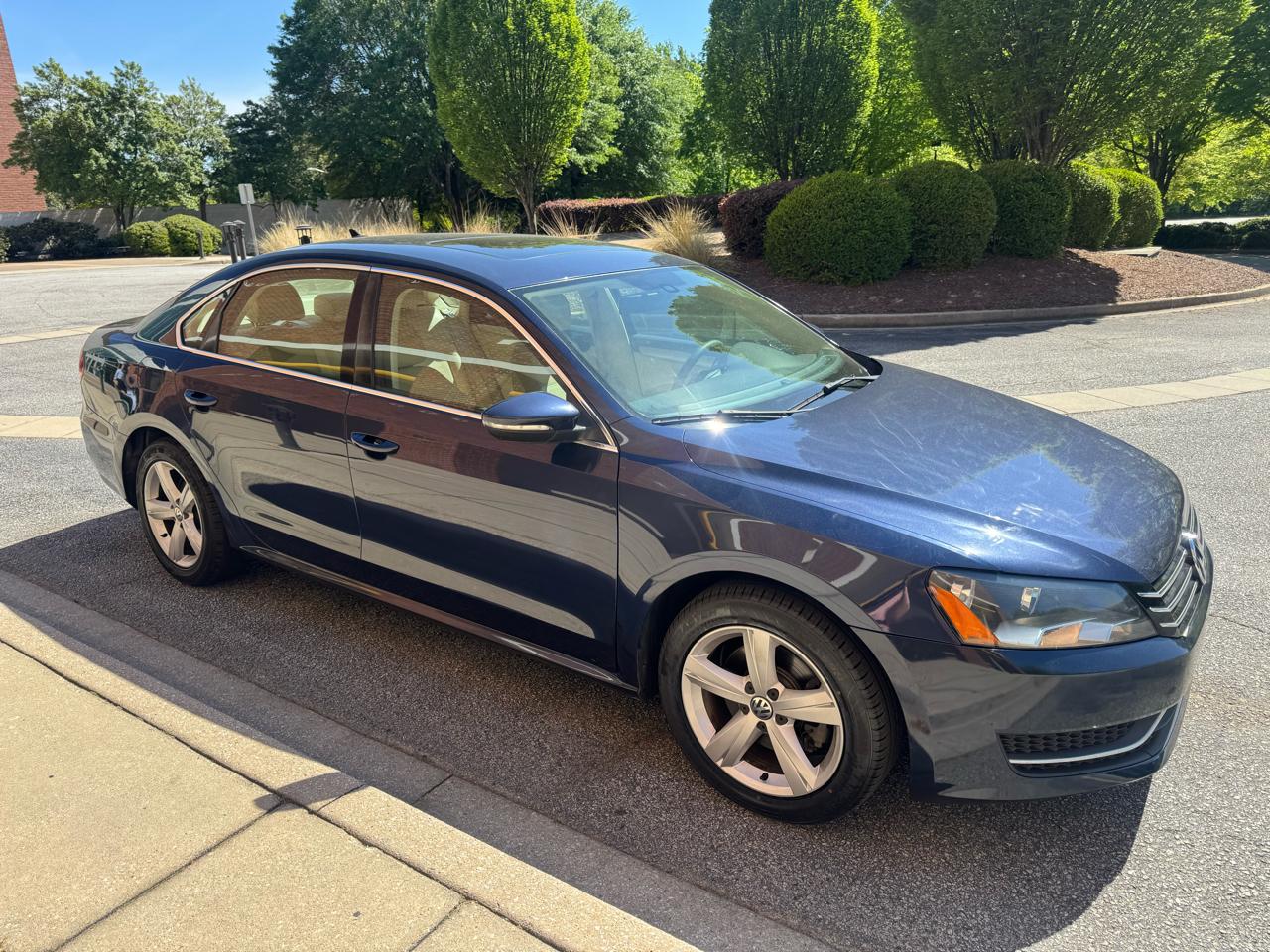 Step into this sleek Blue 2012 Volkswagen Passat and experience the perfect blend of style and functionality. With its smooth ride and sporty alloy wheels, you'll turn heads as you cruise down the road. Whether you're enjoying the AM/FM radio or loading up your favorite CDs in the changer, this car has the entertainment options to keep you grooving. The driver multi-adjustable power seat, front heated seats, and leather steering wheel ensure that every drive is a comfortable one.Safety is a top priority with this Passat, featuring a full complement of airbags, ABS brakes, and a vehicle stability control system. Knowing that a Carfax report is available gives you peace of mind as you hit the road. From the automatic headlights to the rear window defogger, this car is packed with convenient features designed to make your driving experience a breeze. With all of these features and more, this Blue Passat is ready to take you on your next journey in style and comfort.